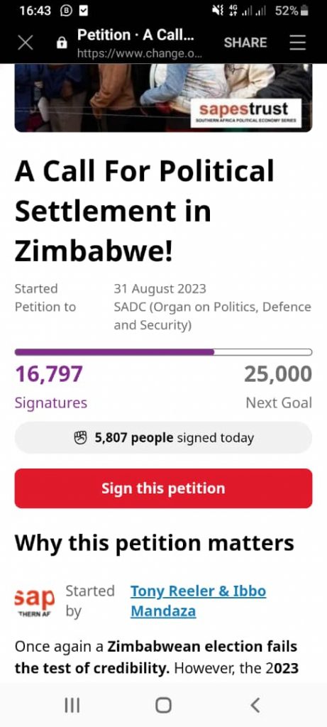Natalie Nyathi In a bid for a political settlement in Zimbabwe, a petition to the Southern…
