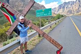 BEIT BRIDGE – In a remarkable display of faith and endurance, a South African pilgrim, identified only as Coetzee, has captured public attention as he continues his extraordinary walk from Cape Town to Israel, pulling a wheeled wooden cross.