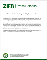 The Zimbabwe Football Association (ZIFA) has expressed deep regret over an incident involving national team player Tinotenda Kadewere and journalist Yvonne Mangunda during the Warriors’ media open training session at Orlando Stadium.